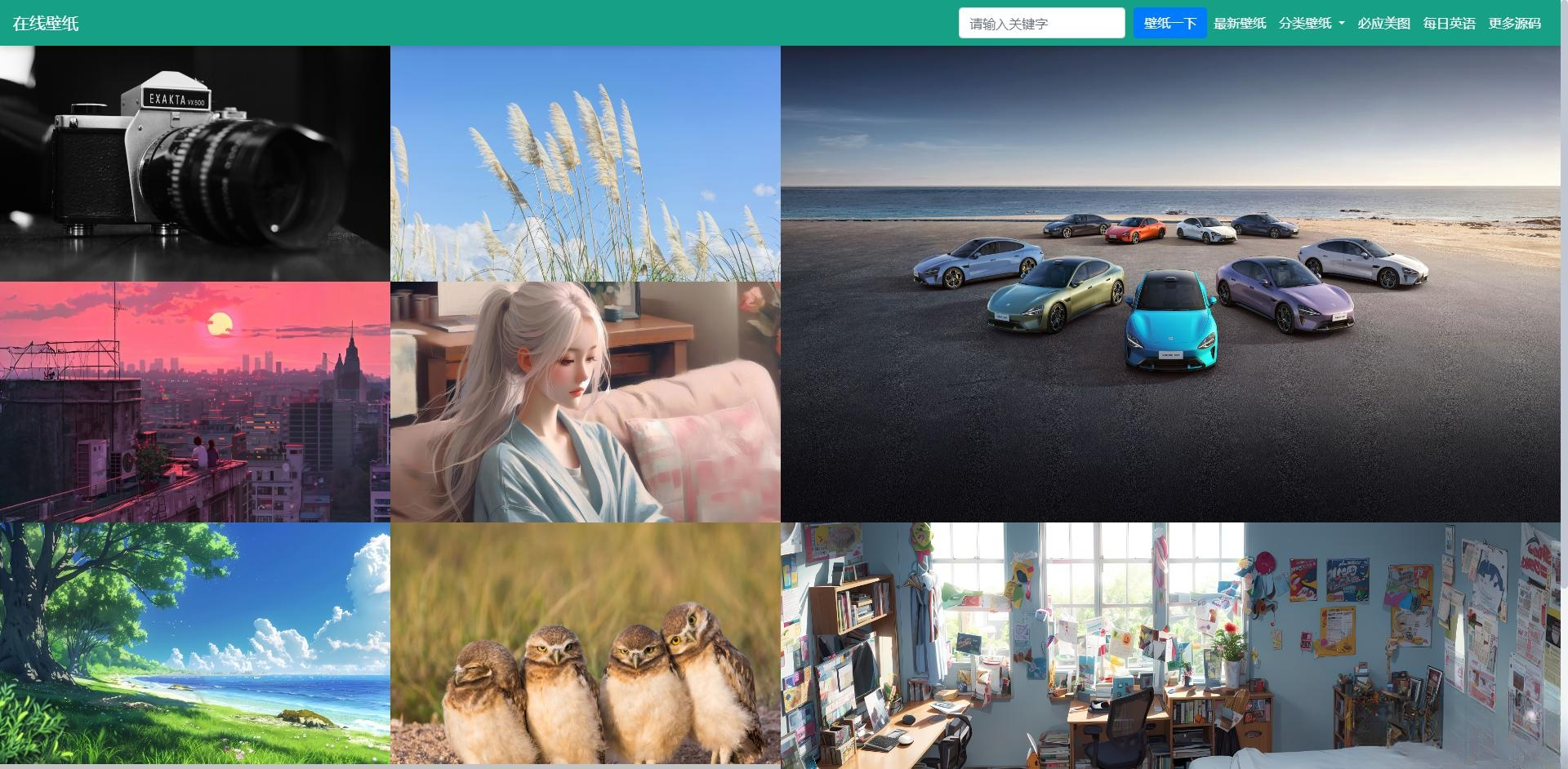 首页壁纸、金山词霸每日英语、必应每日壁纸栏目适应移动端支持 https 增加搜索入口,直接搜索自己想要的美图壁纸种类多、自动更新,自动采集、瀑布流加载、全站 ajax! 壁纸采集自 360 壁纸库、必应首页的每日图片以及金山词霸开放平台(非第三方接口,全部都是来自官方壁纸接口!)
