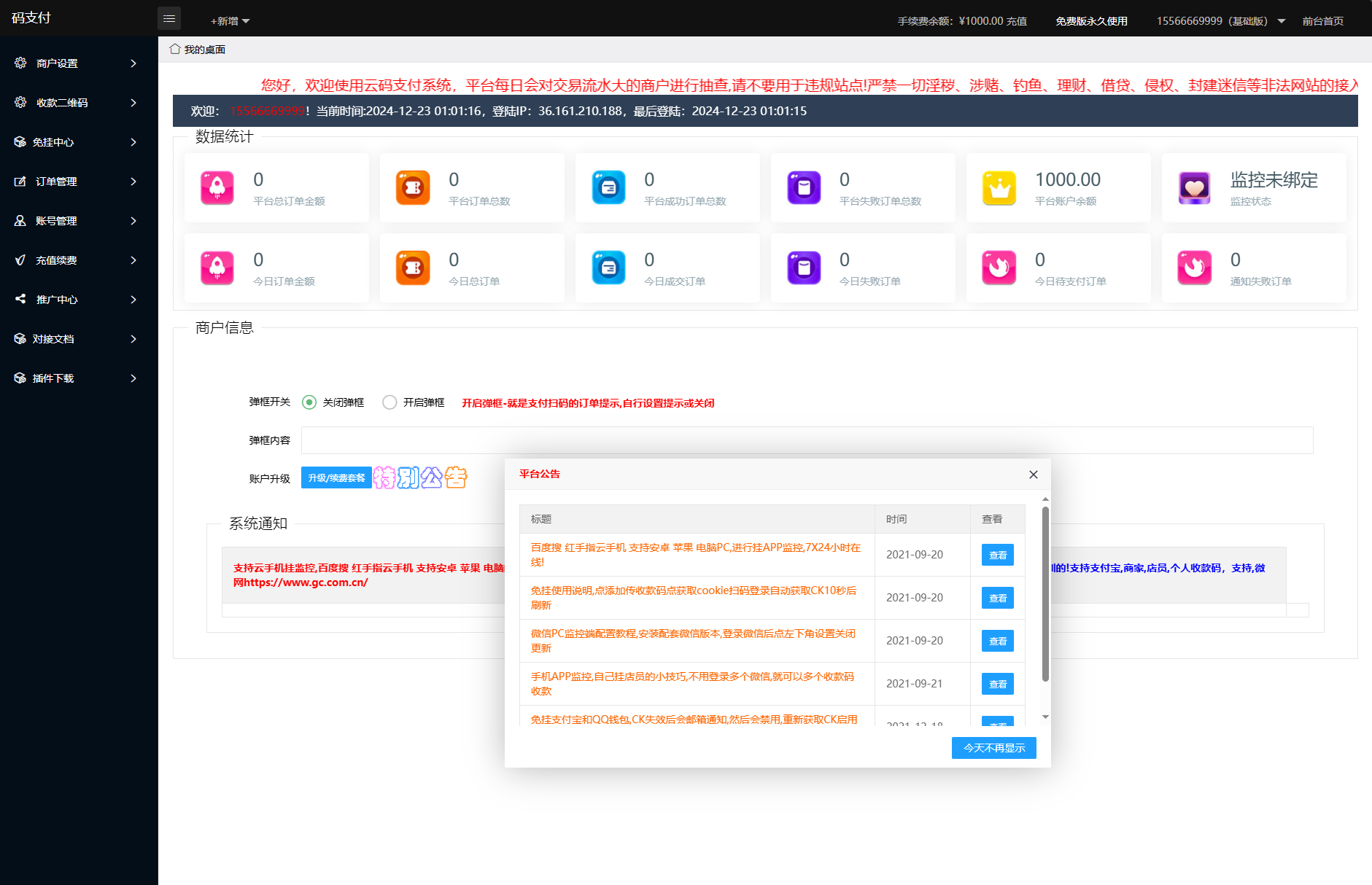 一款专业的聚合免签收款系统,无需对接其余平台,个码就可收款,灰常的方便快捷,集成实现三网免挂功能,