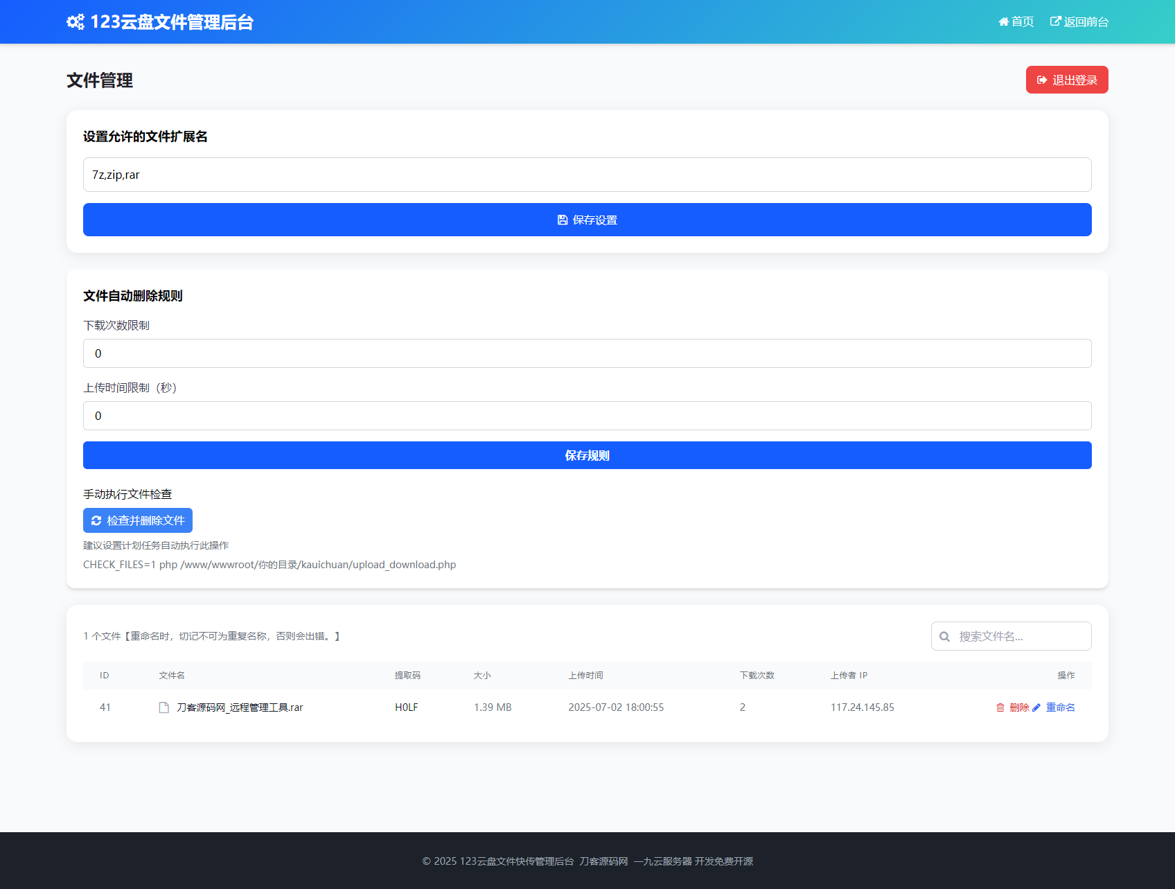 最新临时文件快传系统源码 轻量化 带后台 首发